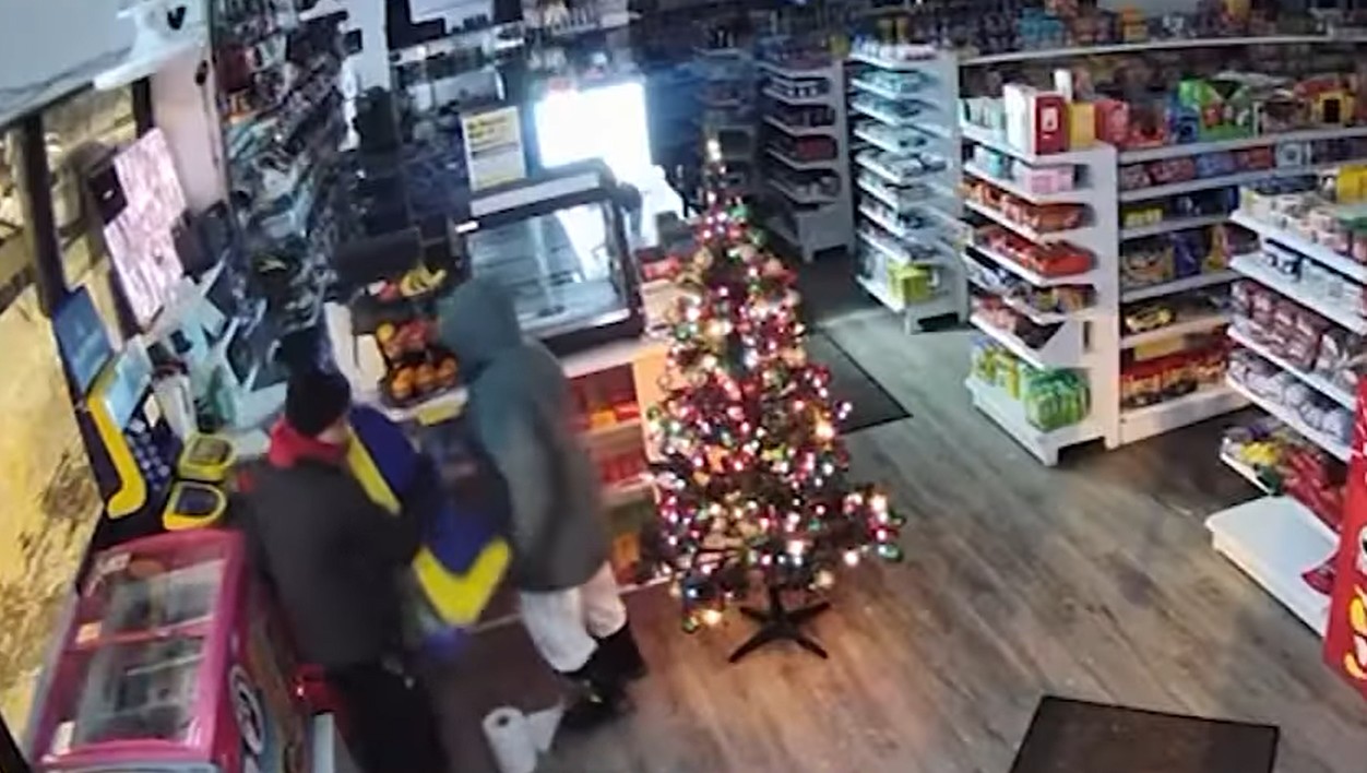 The incident occurred at the Express Food Mart on Devon Avenue. The store owner reported that two suspects used a large stone to break the front glass door of the business.