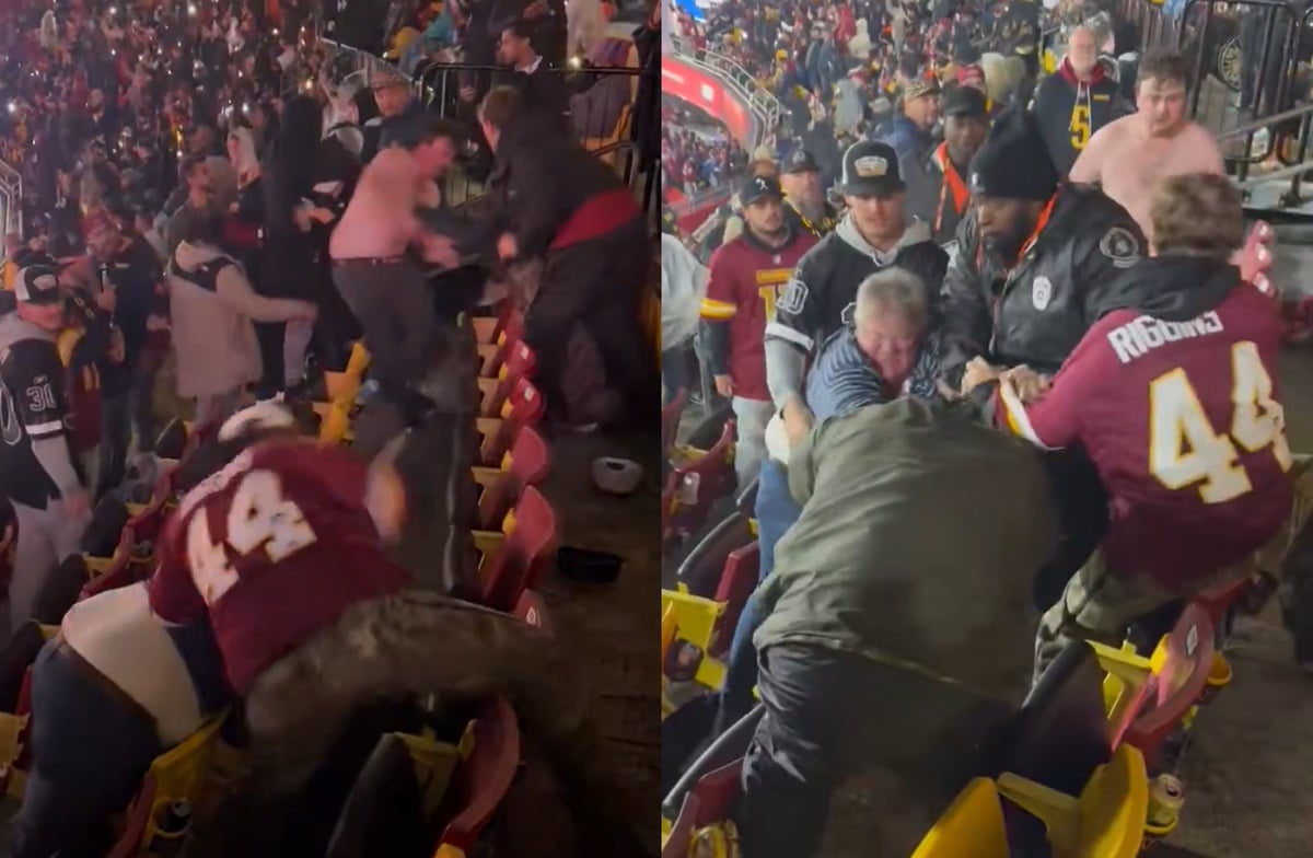 Video footage, captured by Commanders fan Kiara Shanae and shared on Instagram, shows multiple home supporters fighting in the seating area. The brawl started with security nowhere in sight.