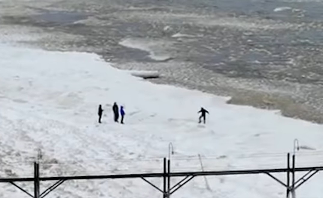 New drone footage captured a series of close calls on Lake Michigan this weekend as visitors ignored safety warnings to walk on dangerous “shelf ice.”
