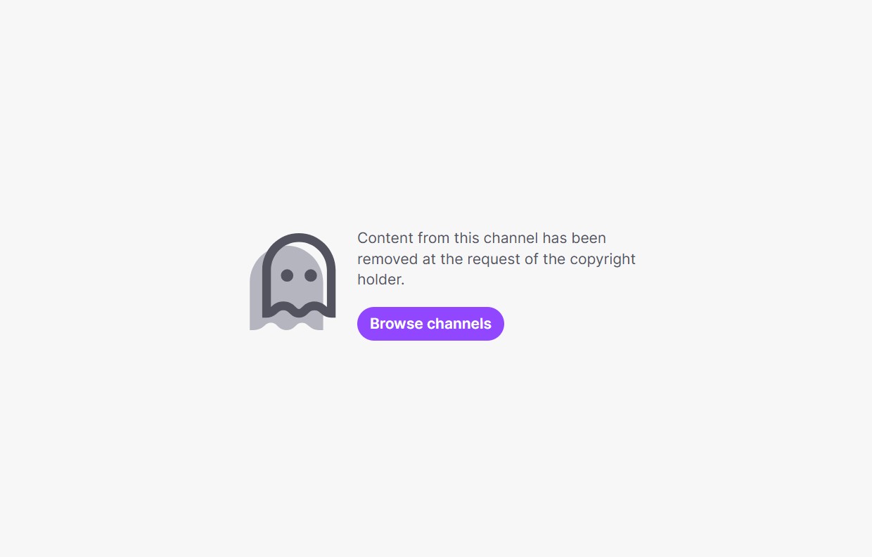 “Content from this channel has been removed at the request of the copyright holder”, the DDG Twitch account reads.