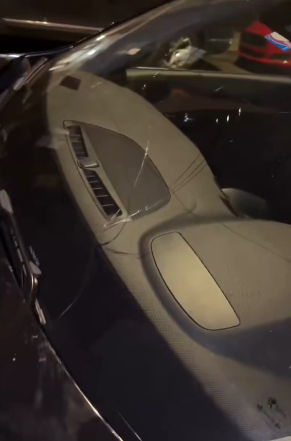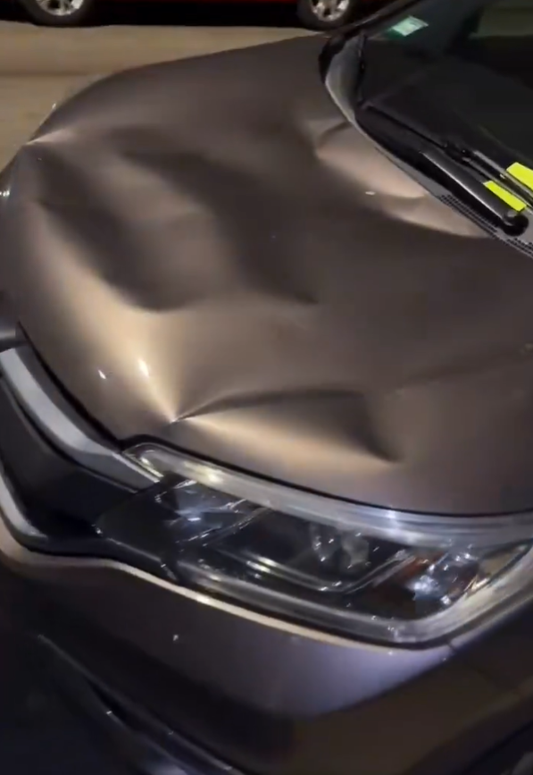 His car suffered significant body damage after being used as a platform by the crowd.