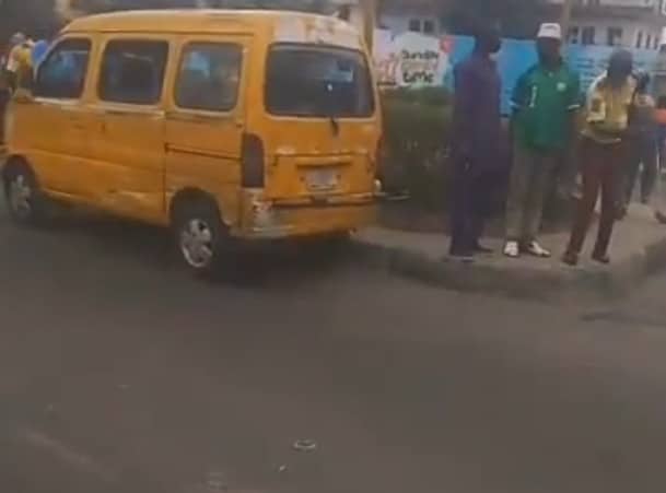 A commercial minibus was involved in a lone accident at Jibowu under the bridge this morning, and the vehicle has been cleared from the road.