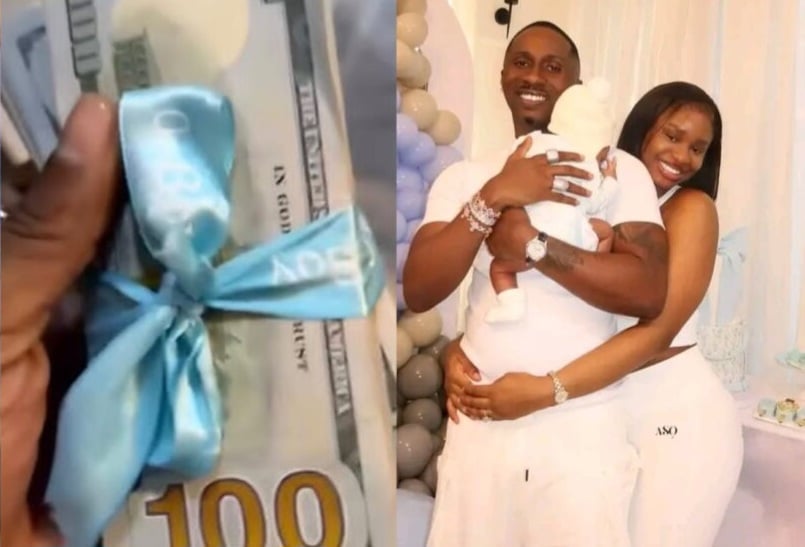 Tanzanian music star, Juma Jux, has melted hearts online after surprising his wife, Priscilla Ojo, with bundles of dollars as a lavish push gift.