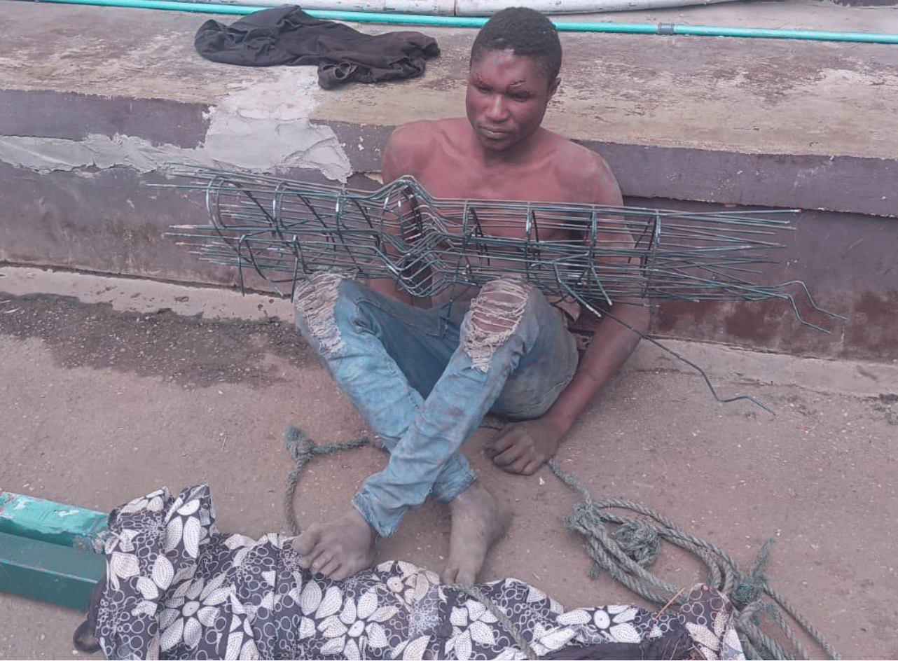 Lagos State officials apprehended a 27-year-old man, Adamu Ismail, for stealing fence wire mesh at Peace Park in Ojota on Monday.