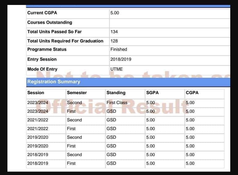 He wrote, “This is a testament that dreams come true! B.Sc Cell Biology and Genetics with perfect CGPA (5.00/5.00) ✅ Overall Best Graduating Student 2023/2024 @UnilagNigeria 🎓 Numerous awards & records broken. God did it! Proverbs 22:29 #unilag #UNILAG2024Convocation.”