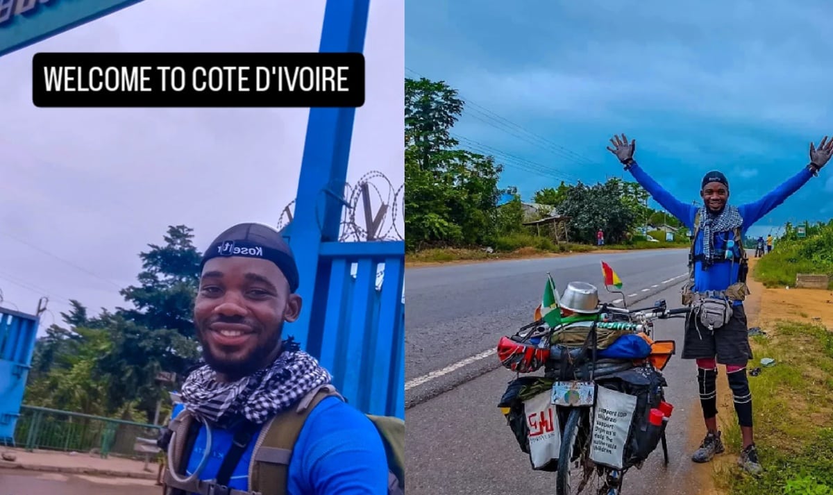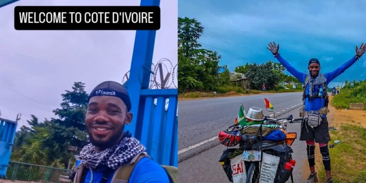 Emmanuel Myam, a 25-year-old Nigerian adventurer known as Emmiwuks, marked a significant milestone in his audacious solo bicycle journey from Lagos, Nigeria, to the United States by arriving in Côte d’Ivoire after 31 days on the road.