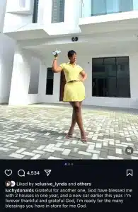 Popular Nollywood actress Luchy Donalds has added another feather to her cap, becoming a proud homeowner for the second time in just one year.