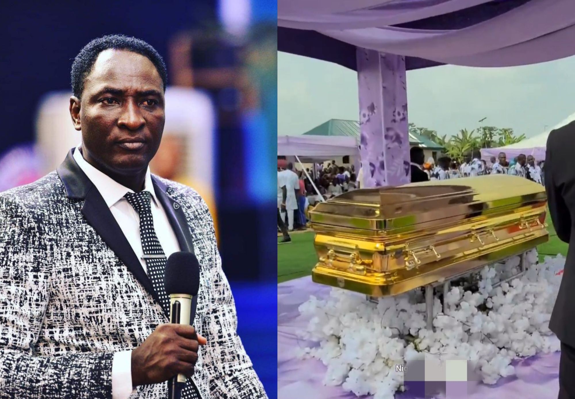 Founder of Christ Mercyland Deliverance Ministry, Prophet Jeremiah Fufeyin, has buried his late mother, Mama Asetu, in a gold-plated casket reportedly valued at about ₦150 million.