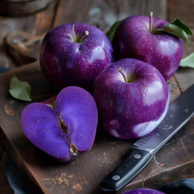 The Purple Apple image is fake. The pictures were created using Artificial Intelligence (AI).