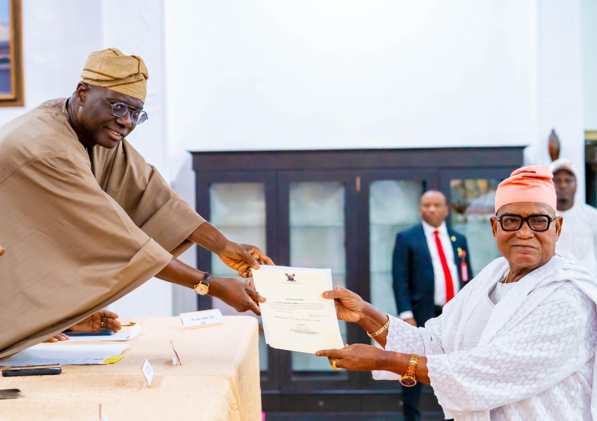 Lagos State Governor Babajide Sanwo-Olu swore in Hon. Okeowo Olufemi Akanbi as the new Chairman of Ifelodun Local Council Development Area (LCDA) on Monday at Lagos House, Ikeja.