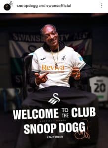 “Swansea City is delighted to announce global rap superstar and multi-platinum selling artist Snoop Dogg has become the club’s latest high-profile co-owner and investor.”