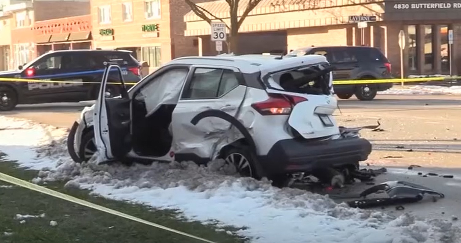 The SUV continued down Butterfield Road, crossing multiple lanes of traffic and striking several other cars along the way.
