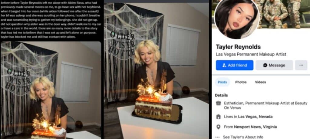 She claims Rasa assaulted her on October 7, 2023, during a party in Las Vegas, while her friend, identified as Tayler Reynolds, did nothing to intervene.